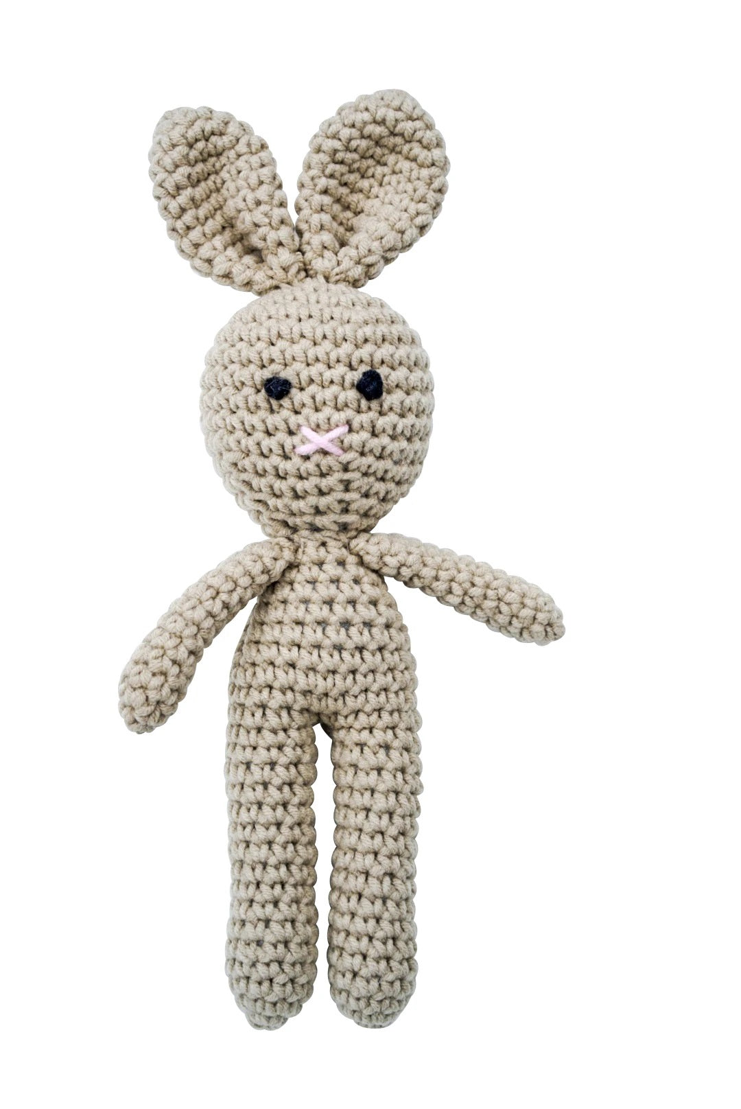 • Lulu Crochet Bunny in Taupe – A handmade, cuddly crochet bunny that’s soft, safe, and ready to be baby’s first best friend.