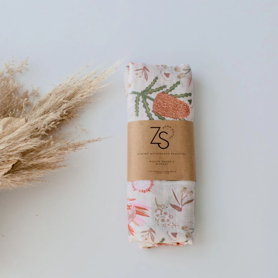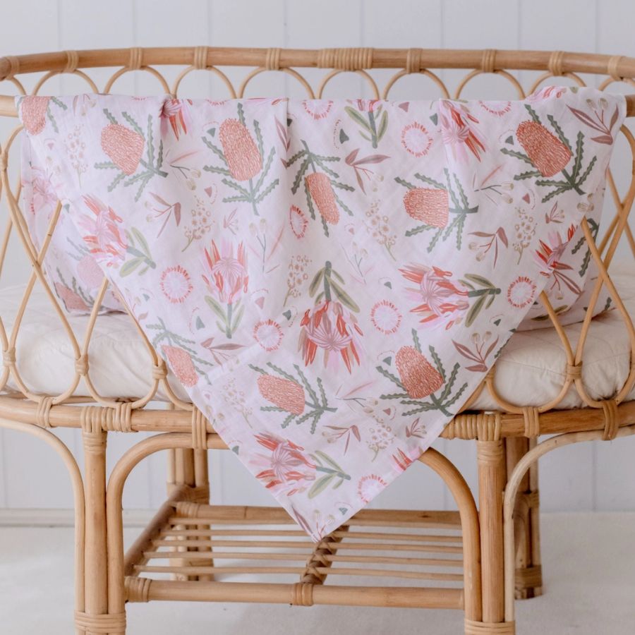 Gumnut Blossoms Organic Cotton Muslin Swaddle Wrap by Zoe Sage