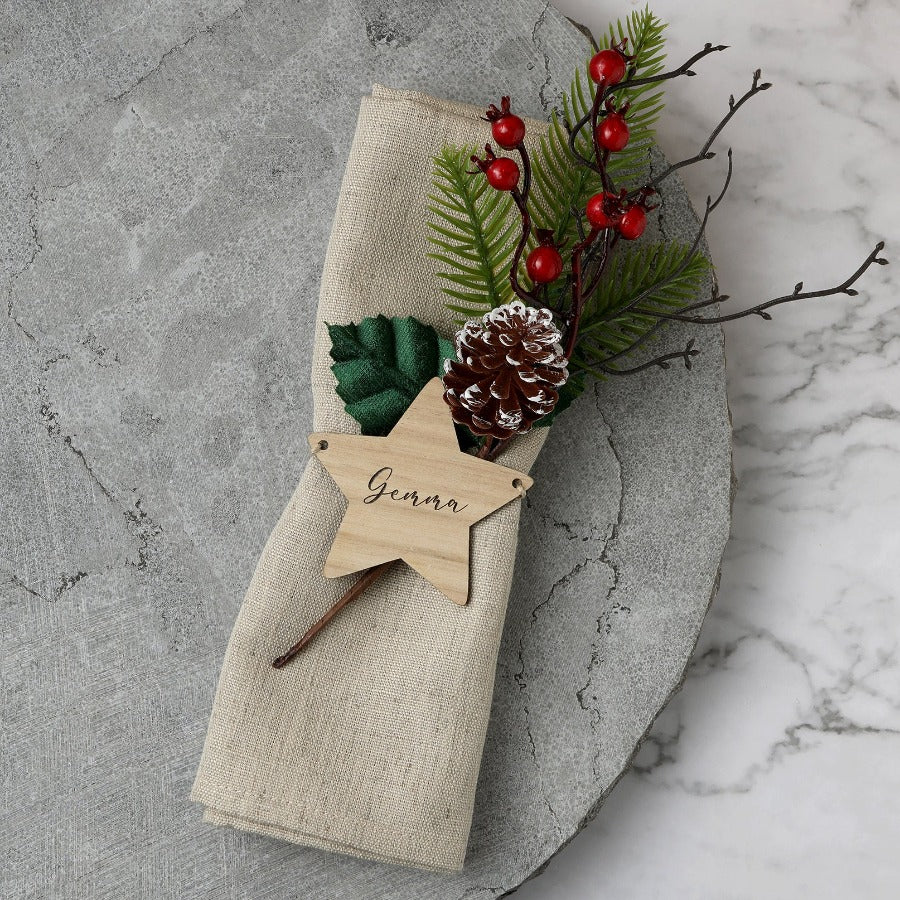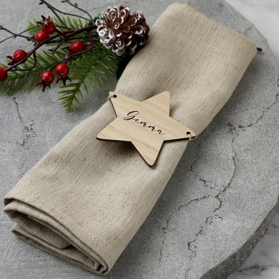 Personalised Christmas Wooden Star Napkin Tie - Fauve + Co