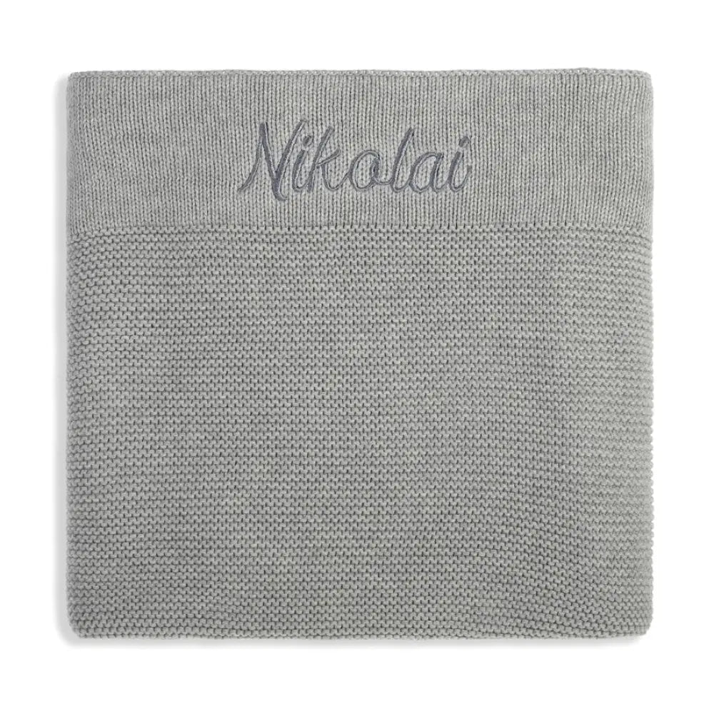 Personalised Cotton Knit Baby Blanket Grey - Fauve + Co