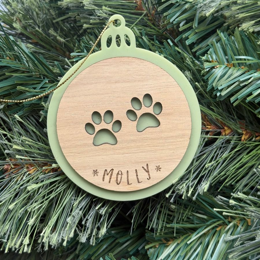 Personalised Pet Christmas Acrylic Ornament - Paw Print - Fauve + Co