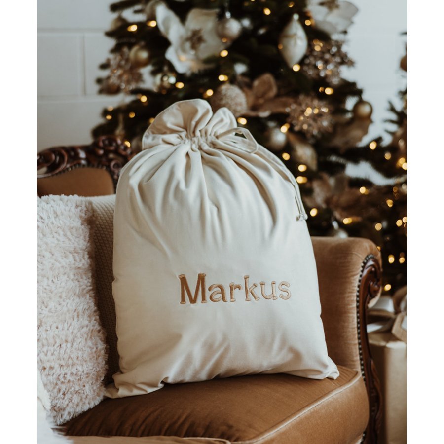 Personalised Velvet Christmas Sack - Cream (PRE-ORDER ETA 31/10)